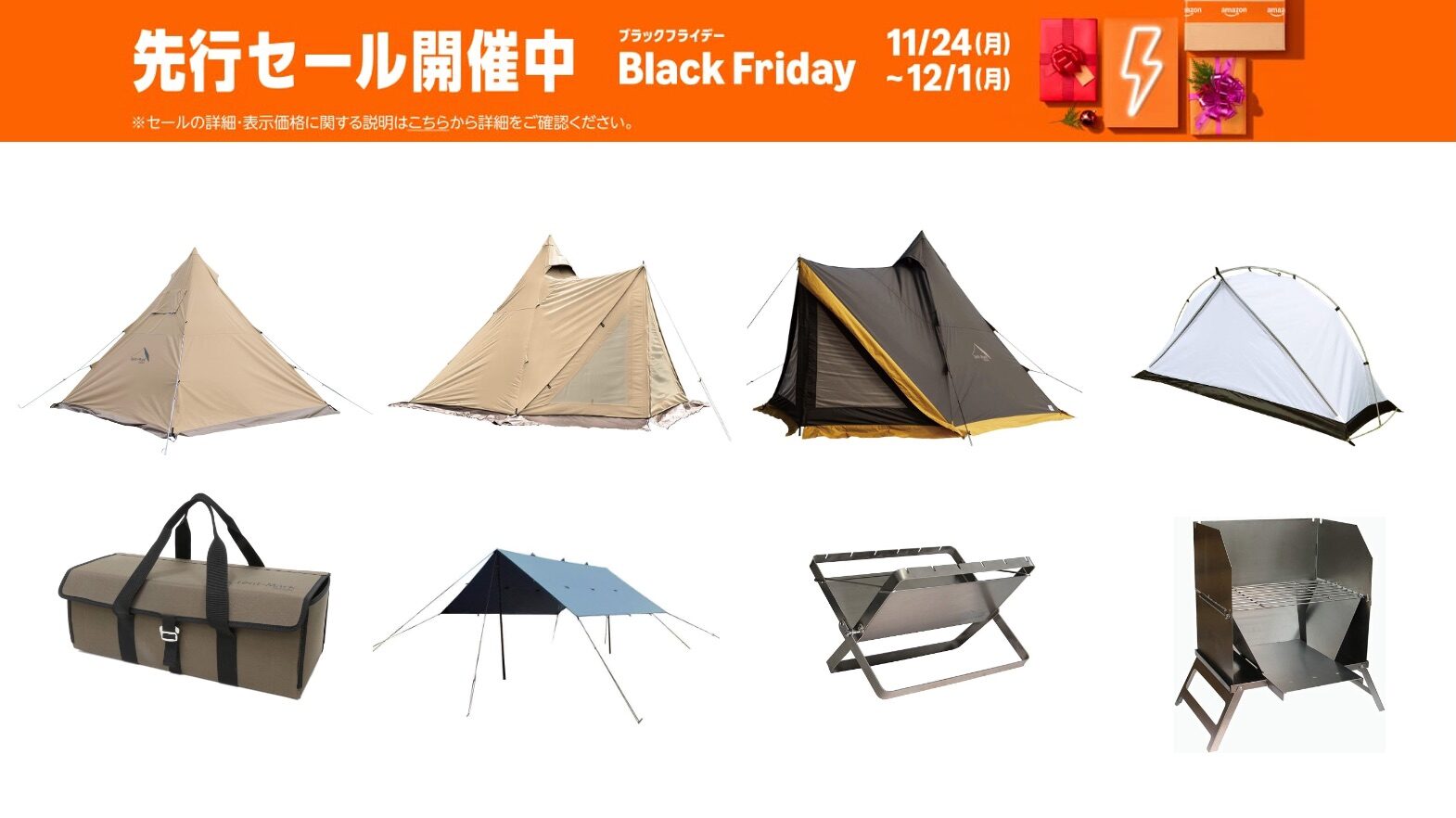 Amazon(アマゾン)にて、2025年11月24日0:00〜12月1日23:59の期間中、ブラックフライデーセールが開催されます。3日前の21日0:00からは先行セールが始まっております。キャンプ用品もセールの対象となっており、tent-Mark DESIGNS(テンマクデザイン)のキャンプグッズもお得に購入できます。詳細をレビューします。