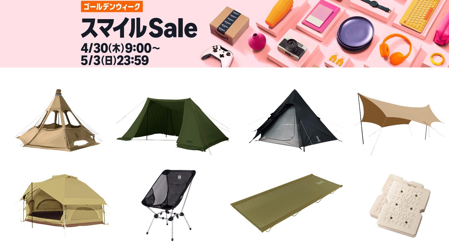 Amazon GWスマイルセールとは、Amazonがゴールデンウィークに行っている割引セールです。セール実施期間は2026年4月30日9:00〜5月3日23:59までとなっております。本記事では、特にアウトドアグッズ、キャンプグッズの割引情報をご紹介します。