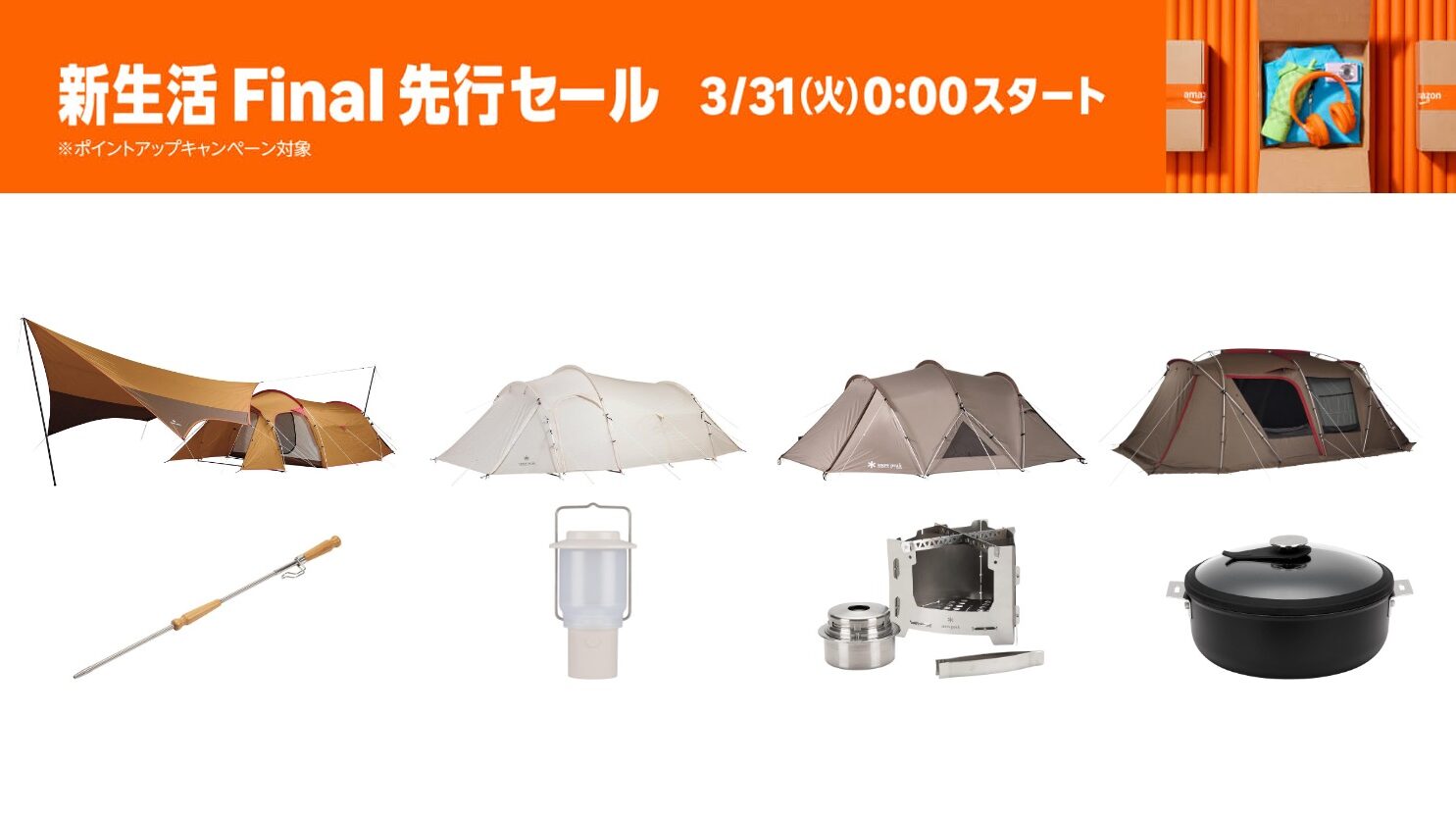 2026年4月3日〜6日の期間中、Amazonにて「Amazon新生活セール Final」が開催されます。3月31日からは先行セールが開催されています。アウトドア用品、キャンプ用品もセールの対象となっており、snow peak(スノーピーク)のキャンプグッズもお得に購入できます。詳細をレビューします。