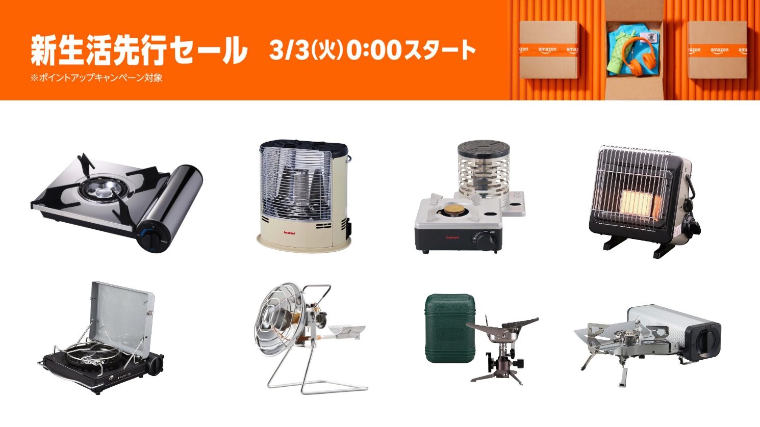 2026年3月6日〜9日の期間中、Amazonにて「Amazon新生活セール」が開催されます。3月3日からは先行セールが開催されています。アウトドア用品、キャンプ用品もセールの対象となっており、Iwatani(イワタニ)のキャンプグッズもお得に購入できます。詳細をレビューします。