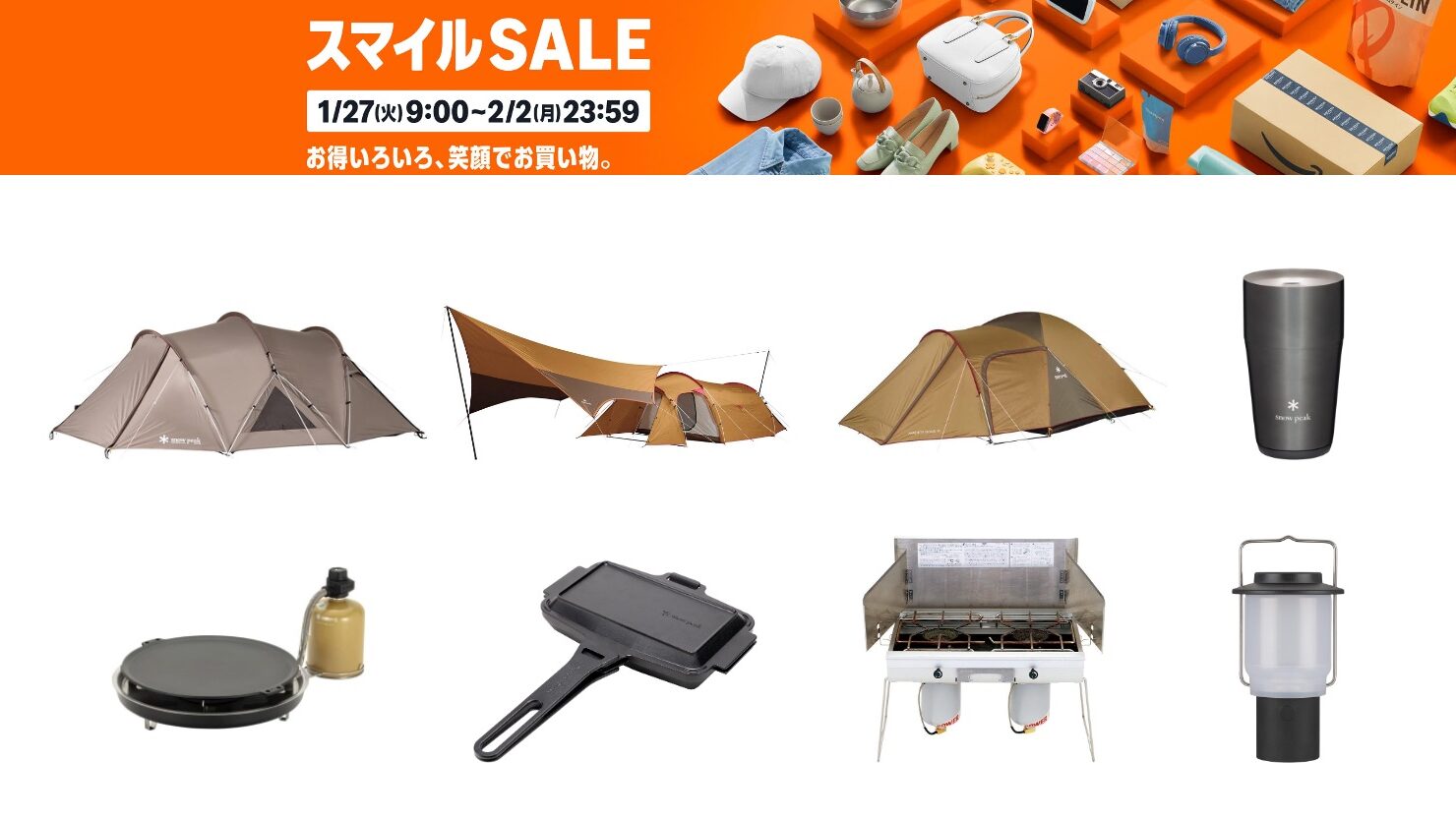 2026年1月27日〜2月2日の期間中、Amazonにて「スマイルSALE」が開催されています。アウトドア用品、キャンプ用品もセールの対象となっており、snow peak(スノーピーク)のキャンプグッズもお得に購入できます。詳細をレビューします。