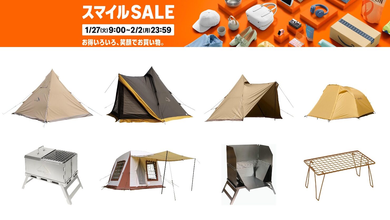 AmazonスマイルSALEとは、Amazonが定期的に行っている割引セールです。セール実施期間は2026年1月27日9:00〜2月2日23:59までとなっています。本記事では、特にアウトドアグッズ、キャンプグッズの割引情報をご紹介します。