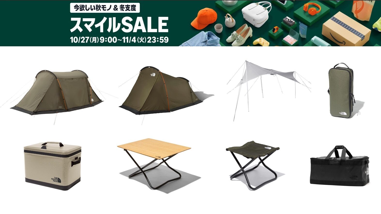 2025年10月27日〜11月4日の期間中、Amazonにて「AmazonスマイルSALE」が開催されます。アウトドア用品、キャンプ用品もセールの対象となっており、THE NORTH FACE(ザ・ノース・フェイス)のキャンプグッズもお得に購入できます。詳細をレビューします。