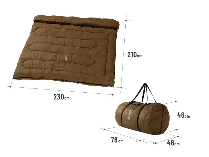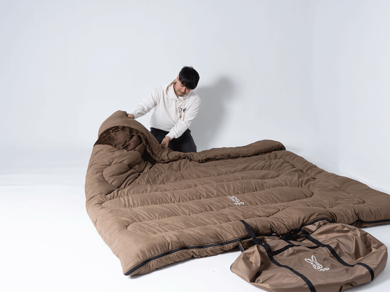 DOD独自のバッグ一体構造を採用しており、素早く片付けられます。1人ずつ個別のシュラフを用意すると比べ、収納時間を短縮できます。