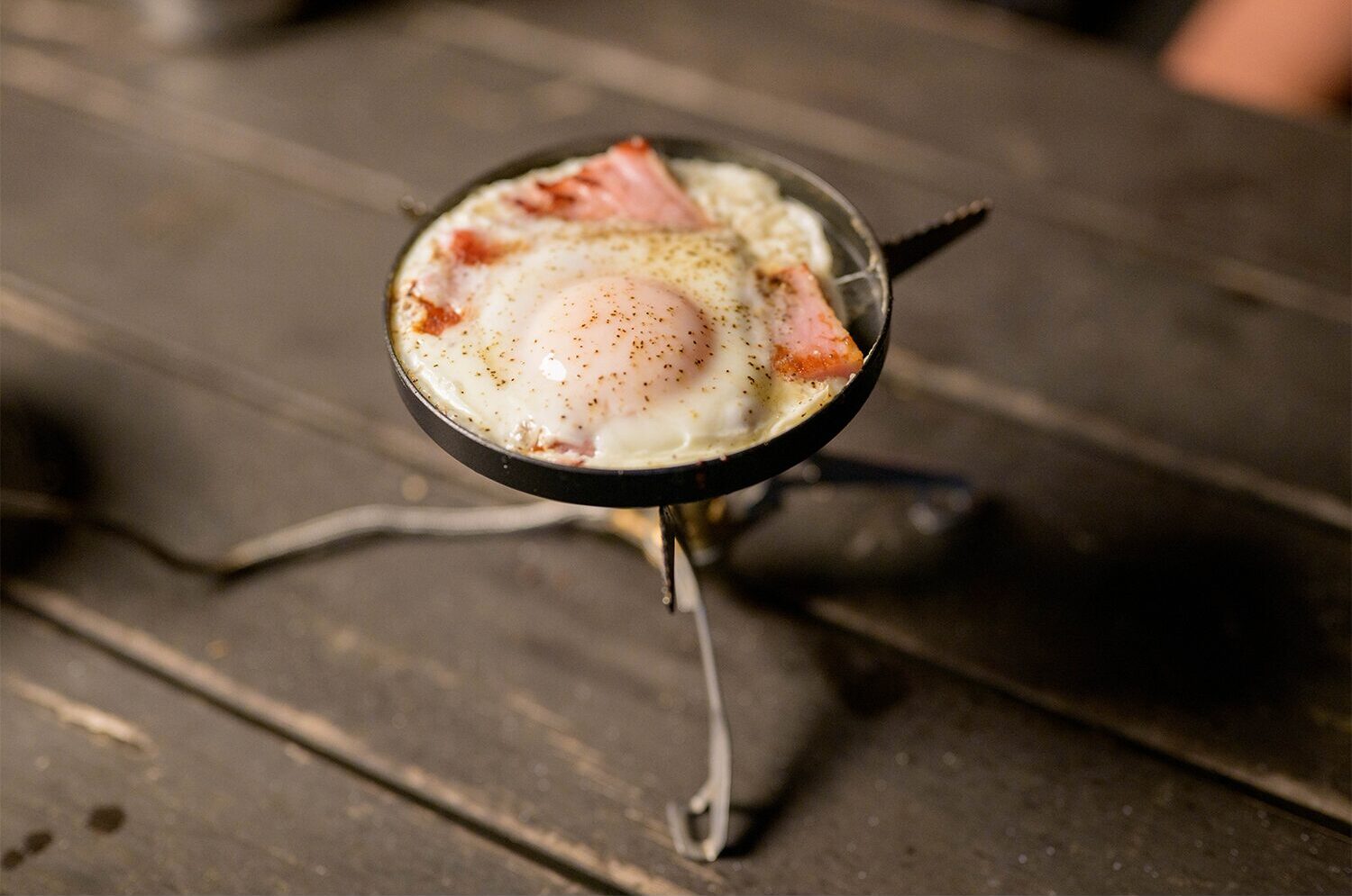 PANTAPAS superior 400/570は、ソロキャンプや単独登山で食事にこだわる方に最適な極小サイズのフライパンです。お酒のおつまみの調理やタンパク質補給に便利な調理器具として活躍します。