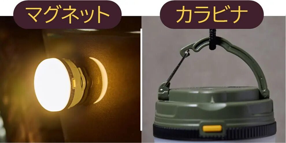LEDランタンにはマグネットが内蔵されており、金属面に貼り付けて固定しながら使うこともできます。