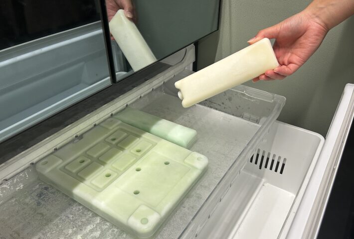 スリムな形状なので、ドリンクボトルや食材のすき間に差し込んで冷やすのに便利です。小さなクーラーボックスやトート型のクーラーバッグには横置きで敷いて保冷効果を持続できます。