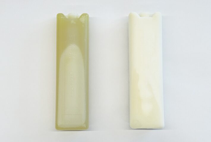 効果を最大に活かすため、ロゴスの氷点下パックは、容器が「半透明」仕様となっています。凍結前は透明感がありますが、凍結すると、白っぽく変化するので、見た目で分かりやすく便利です。