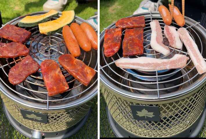 LOGOS 無煙 メシ暖房グリルは、食材から出る油が炭に直接かからない構造になっており、煙を抑えながら調理ができる無煙グリルです。