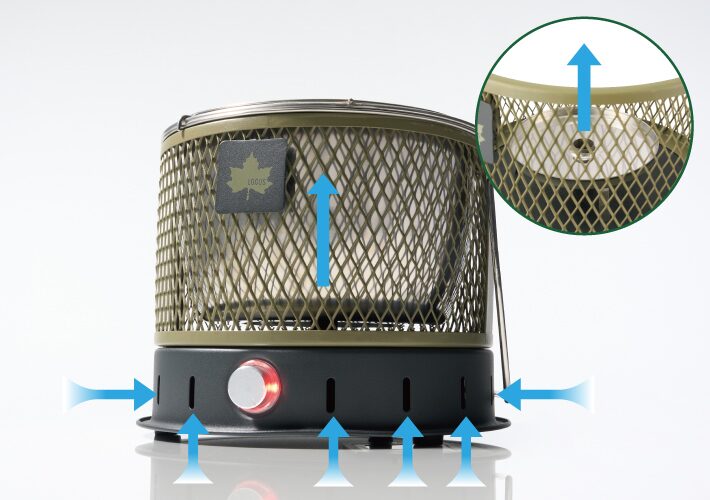 自動送風機能により、燃料の下から効率よく風を送るため、着火スピードがアップします。さらにダイヤル操作で風量を調節できるため、調理に合わせて火力をコントロールできます。