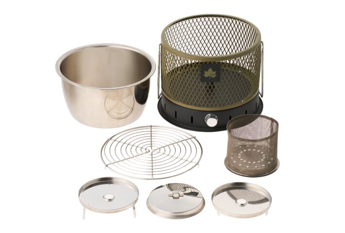 構成:本体、火床、火床ふた、焼網、ストーブ用火床スタンド、BBQ用火床スタンド、BBQ用ステンレスボウル