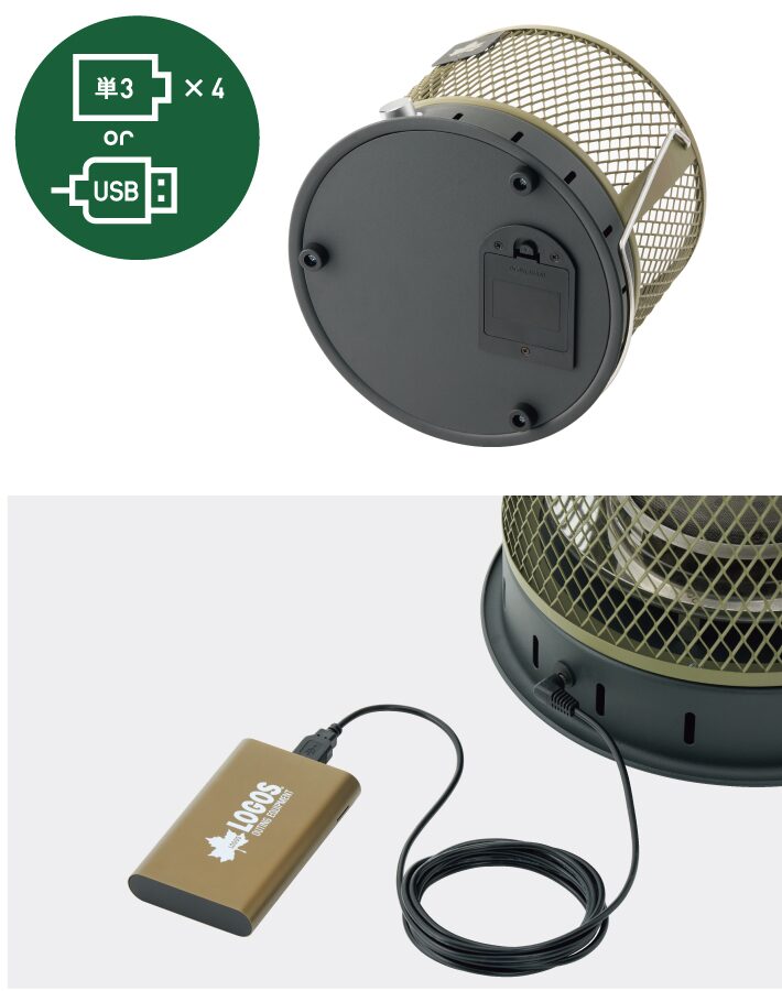 電源は単三アルカリ乾電池とUSBの両方に対応しています。使い分けができ、アウトドアでも安心です。