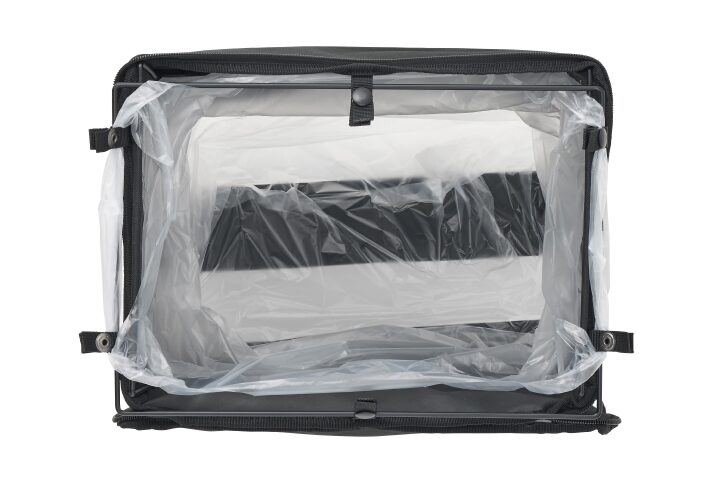 Lサイズは高さ60×幅36×奥行56cmとなっており、45Lゴミ袋に対応した大容量サイズです。ファミリーキャンプやグループBBQなど、ゴミが多く出るシーンでも余裕をもって使用できます。