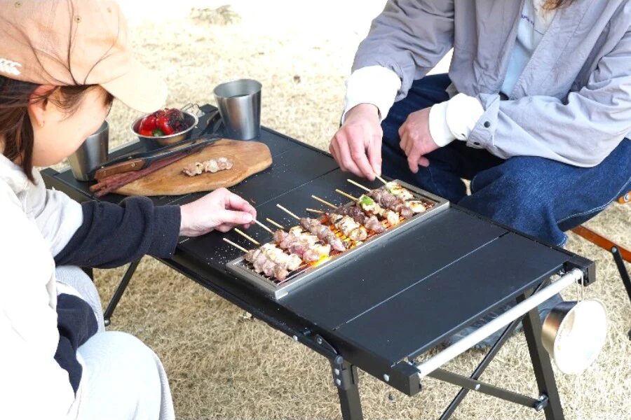 さらに、グリル内で強火ゾーンと弱火ゾーンを作りやすく、焼き鳥なども焼き分けながら調理が可能です。食材に合わせた火加減で焼けるため、アウトドアでも料理の幅がぐっと広がります。