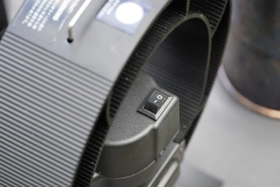 ファンの背面には首振りスイッチが搭載されています。スイッチを入れるだけで、モーターによる自動首振りモードがスタートします。