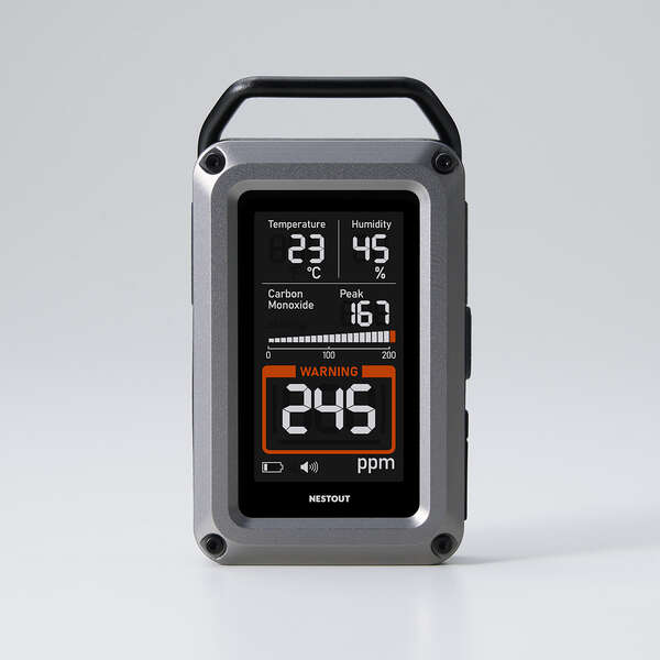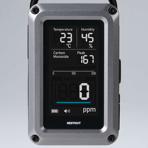 NESTOUT 一酸化炭素アラーム 3in1は、キャンプなどのアウトドアシーンに特化した一酸化炭素アラームです。炭火やストーブ、発電機などから発生する一酸化炭素(CO)を検知し、アラームで濃度の数値を知ることができます。