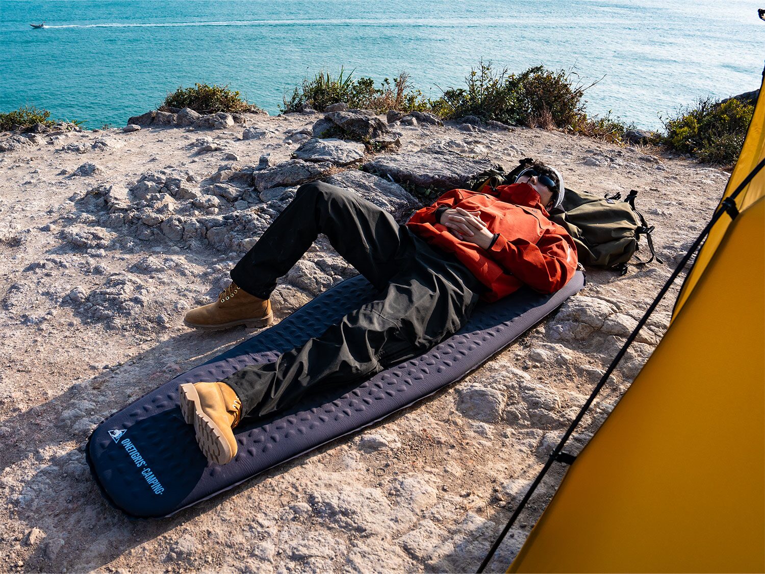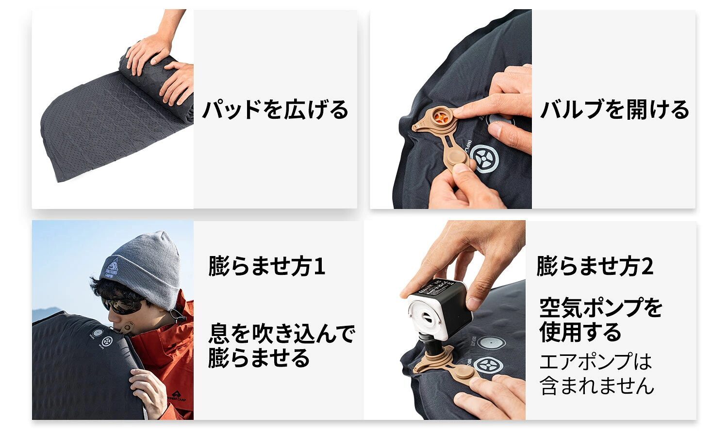 AERODREAM エアーマットは、約60秒で80%まで自動膨張し、さらに20秒空気を注入することで、好みの硬さに調節できます。