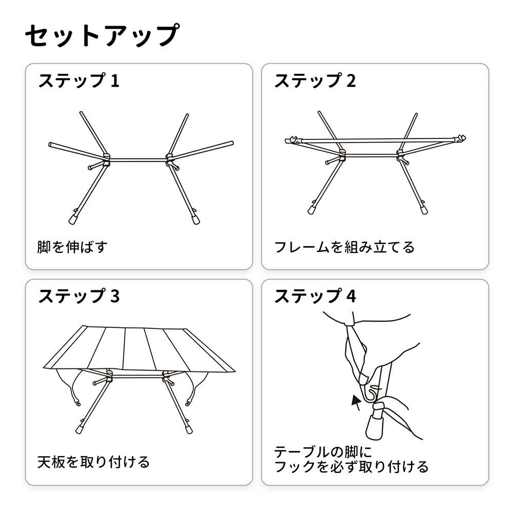 | 付属品 | テーブルトップ *1 テーブルフレーム *1セット サポートバー*2 収納バッグ *1 |