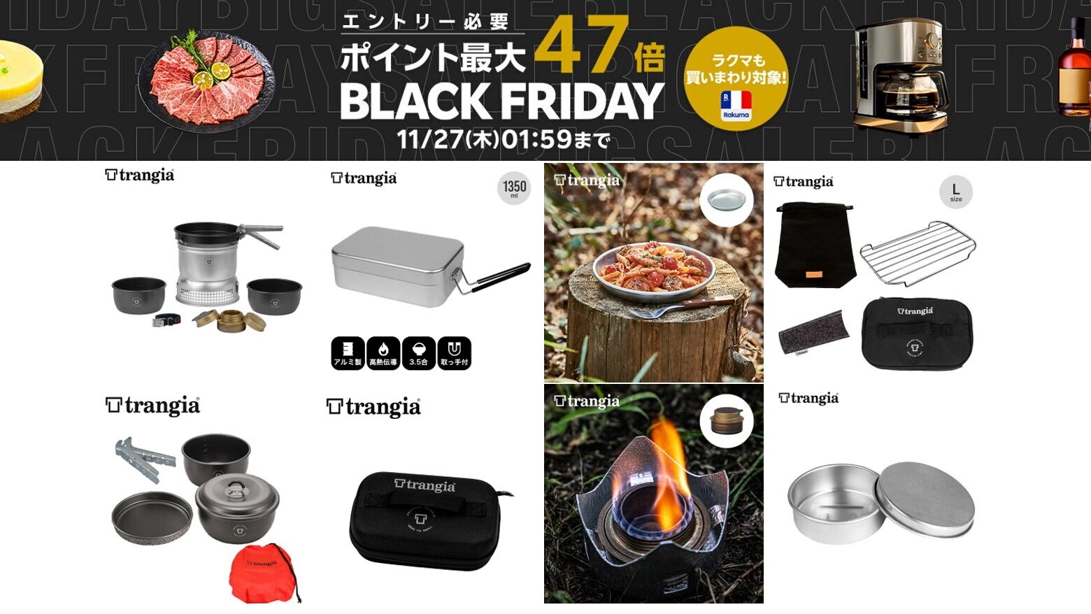 楽天市場にて、2025年11月20日20:00〜27日01:59の期間中、ブラックフライデーセールが開催されます。キャンプ用品もセールの対象となっており、Trangia(トランギア)のキャンプグッズもお得に購入できます。詳細をレビューします。