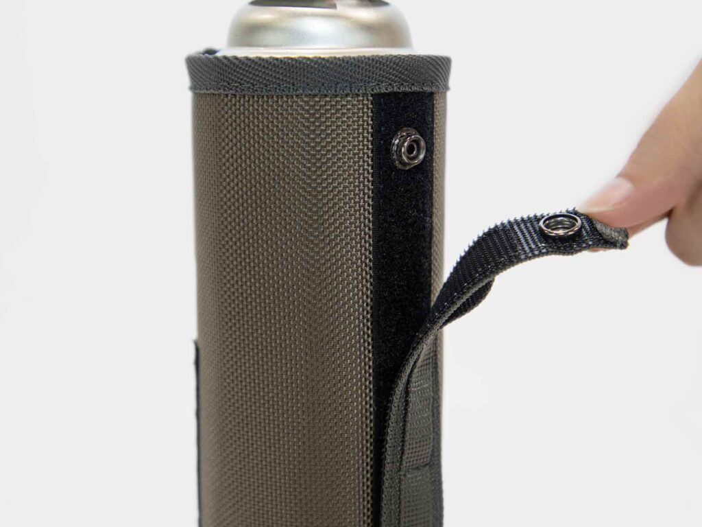 CB缶カバー サーモシールドは、CB缶の火力不足を防ぐカバーです。熱を外に逃がしにくいアルミ蒸着フィルムを裏地に使用しており、断熱性が高まり、冬場や標高の高いキャンプ地でもガス缶の温度低下を抑えることができます。