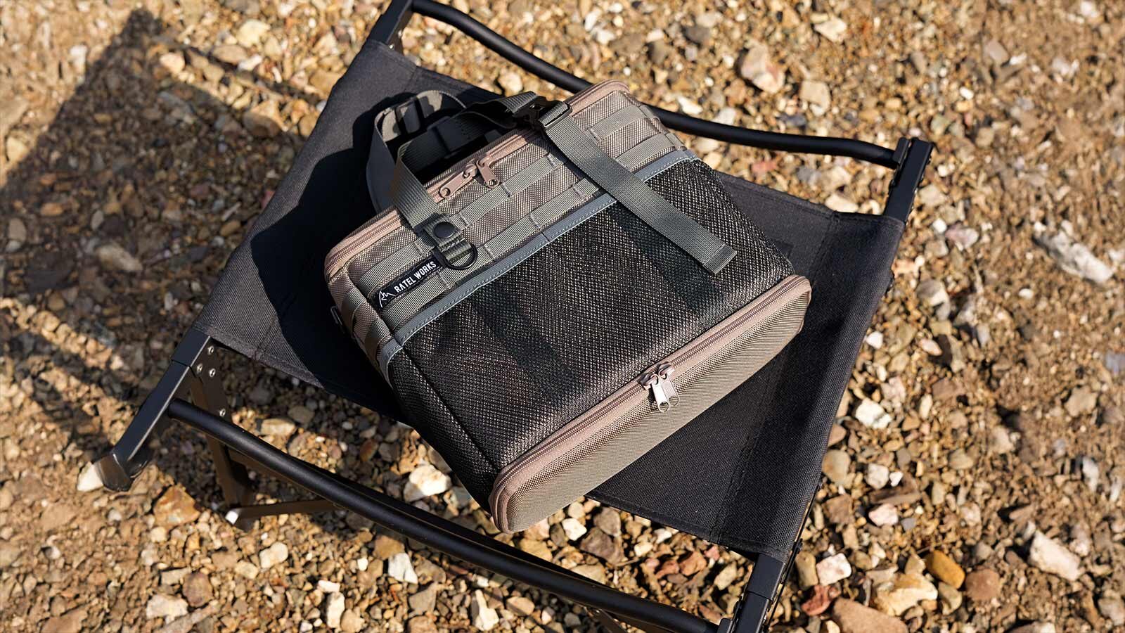 スツールの下にはアンダーラックメッシュが搭載されており、小物のギアや靴などをスマートに収納できます。
