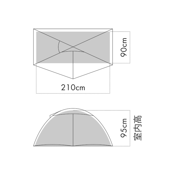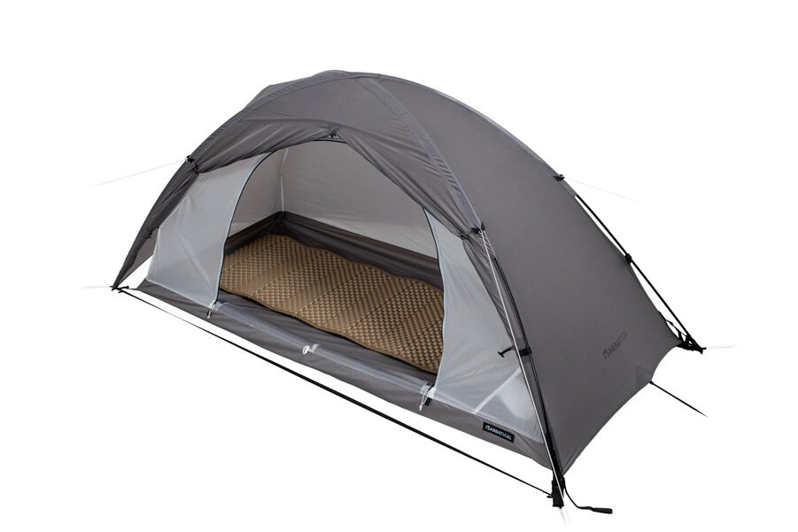 フライには20D、ボトムには30Dナイロンを採用しています。シリコーン加工により引裂強度を高め、山岳用テントとして優れた軽量性と耐久性を両立しています。
