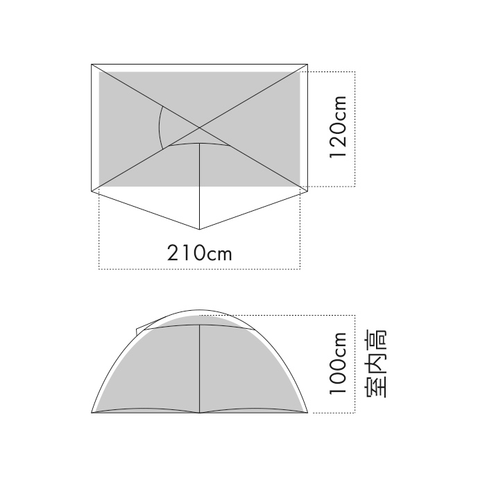 2人用のリネル2は210×120×100cmとなっており、2人分の就寝・滞在に十分なフロアスペースを備え、全身マットを広げることが可能なサイズです。座っての作業や着替えもスムーズです。