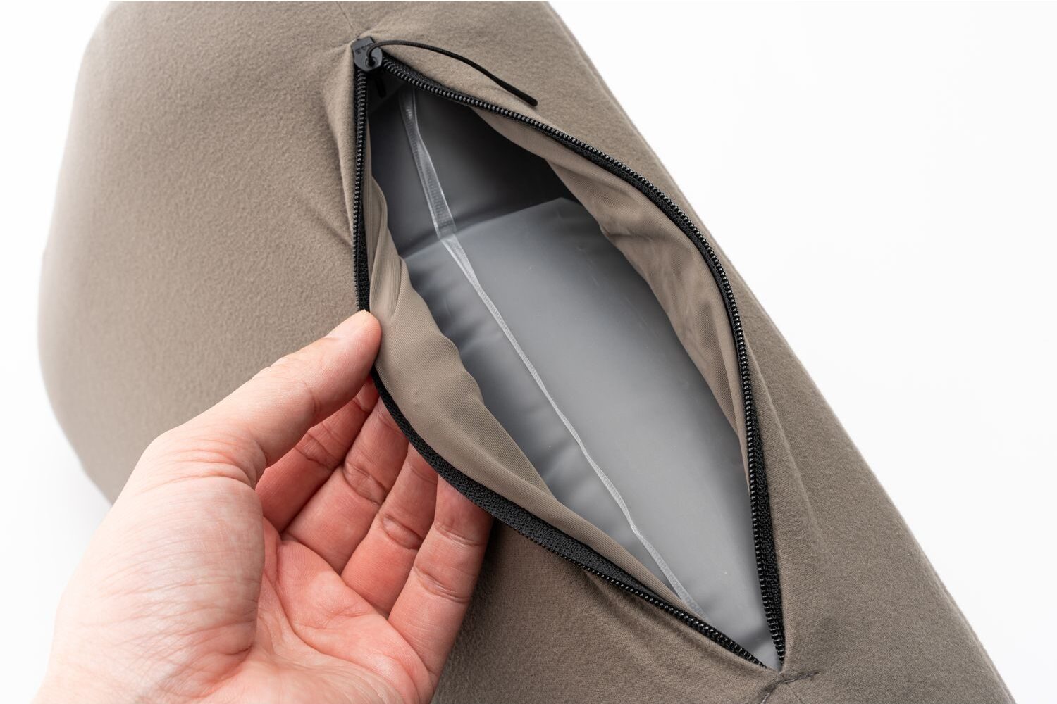 枕カバーはファスナーを開いて着脱できるようになっており、カバーだけ洗うことができます。