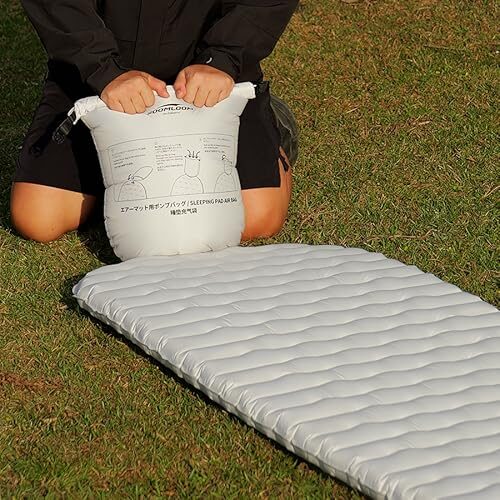 空気を注入しやすくなるポンプバッグが付属しており、いつでもエアーマットを手軽に膨らませることができます。空気を排出することもできます。