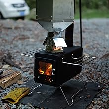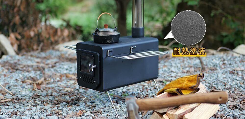 材質:Q235炭素鋼(薪ストーブ本体、蓋)、ステンレス鋼(煙突、スパークアレスター、火格子、灰かき棒)、微結晶耐熱ガラス(窓)