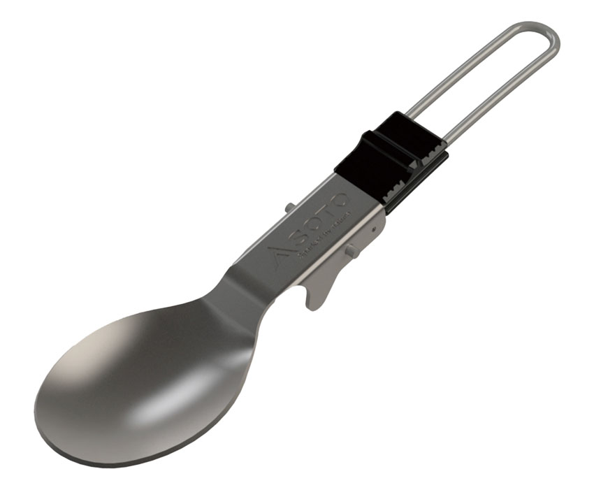UKU スプーンは、チタン製折りたたみ式スプーンです。口当たりを滑らかにするためにチタンの1.2mm板を採用しています。テーブルに置いたとき、先端が “浮く”ように設計された本体の凸部により、常に衛生的に使うことができます。