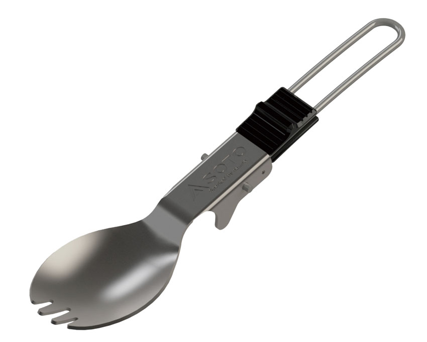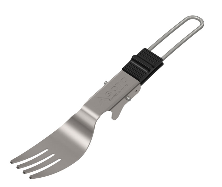 UKU スプーンは、チタン製折りたたみ式フォークです。口当たりを滑らかにするためにチタンの1.2mm板を採用しています。テーブルに置いたとき、先端が “浮く”ように設計された本体の凸部により、常に衛生的に使うことができます。