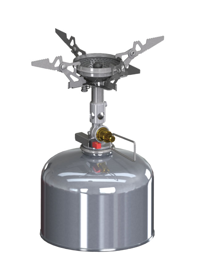 マイクロレギュレーターストーブ ウインドマスターは、SOD-310 ウインドマスター標準装備の3本ゴトクを約18.5%軽量化した4本ゴトク標準装備へとアップグレードしたアイテムです。4本ゴトクを採用することで、クッカーを載せた際の安定感が増し、登山などで、より一層安定して調理を行うことができるようになりました。