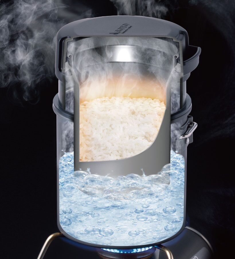 蒸気の熱を利用して炊き上げる独自構造により、”火力調節不要・焦げ付かない・吹きこぼれない”の3つを軸に、調理の簡単さやおいしさ、後片付けの楽さを追求しています。
