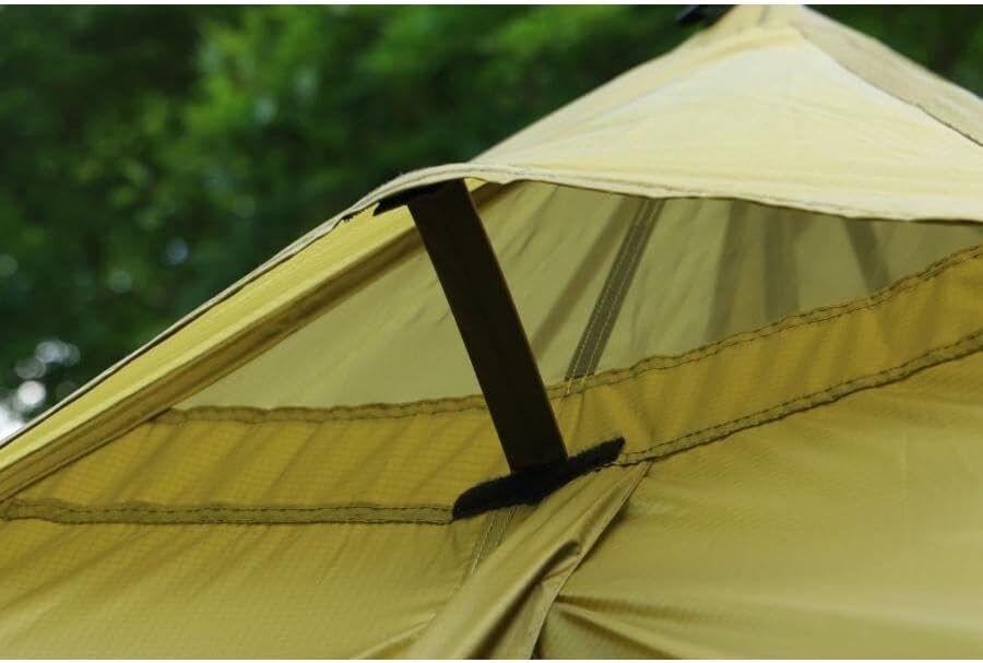 ゆとりある居住空間長方形のフロア設計により、デッドスペースが少なく、荷物やギアの配置も容易です。デュオキャンプのメインテントとして、またはソロの贅沢な空間としても最適です。※ポールは別売りです