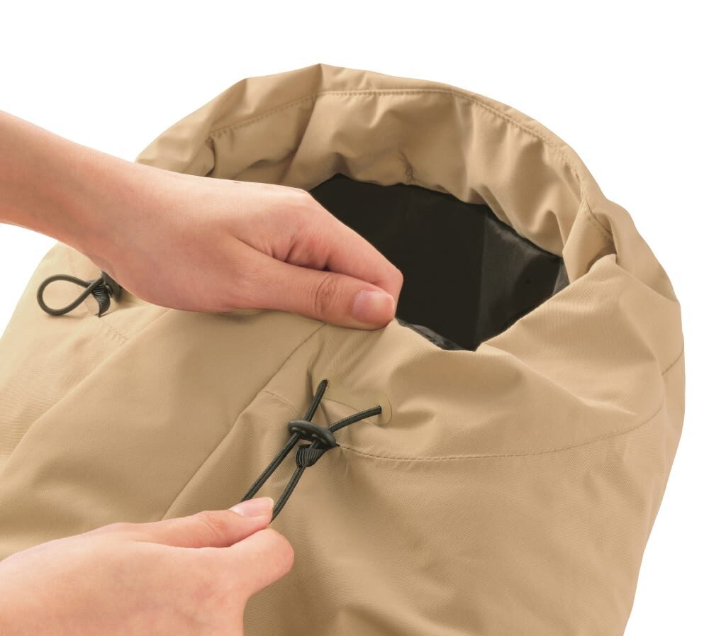 本体生地には、強度の高いリップストップ生地が採用されています。生地表面にはフッ素を使用しない環境にやさしい撥水加工、PFASフリーの撥水剤を使用しています。