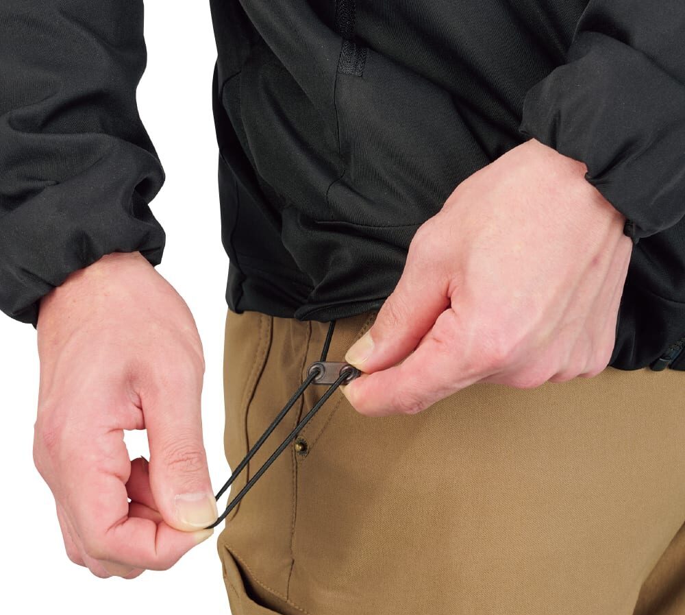 裾内側のスピンドルで裾の長さを調節できるため、冷気が入りにくくなります。