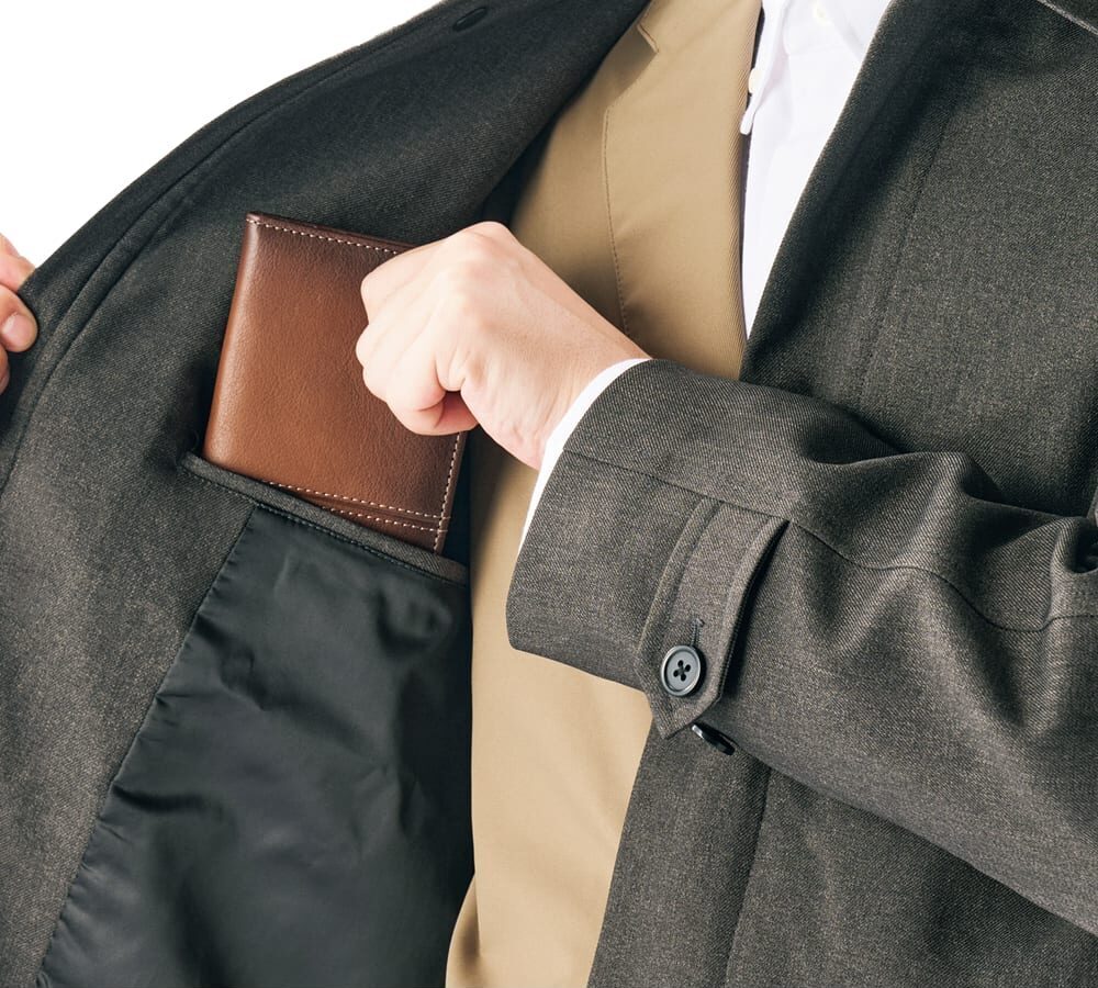 両胸には内ポケットが搭載されており、大切な物を入れるのに便利です。