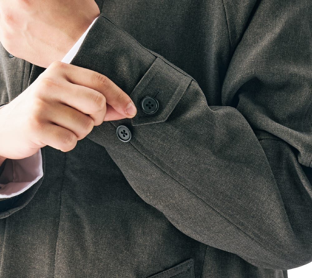 ラグラン袖で腕が動かしやすく、袖口に取り付けられたスリーブタブで調節が可能です。