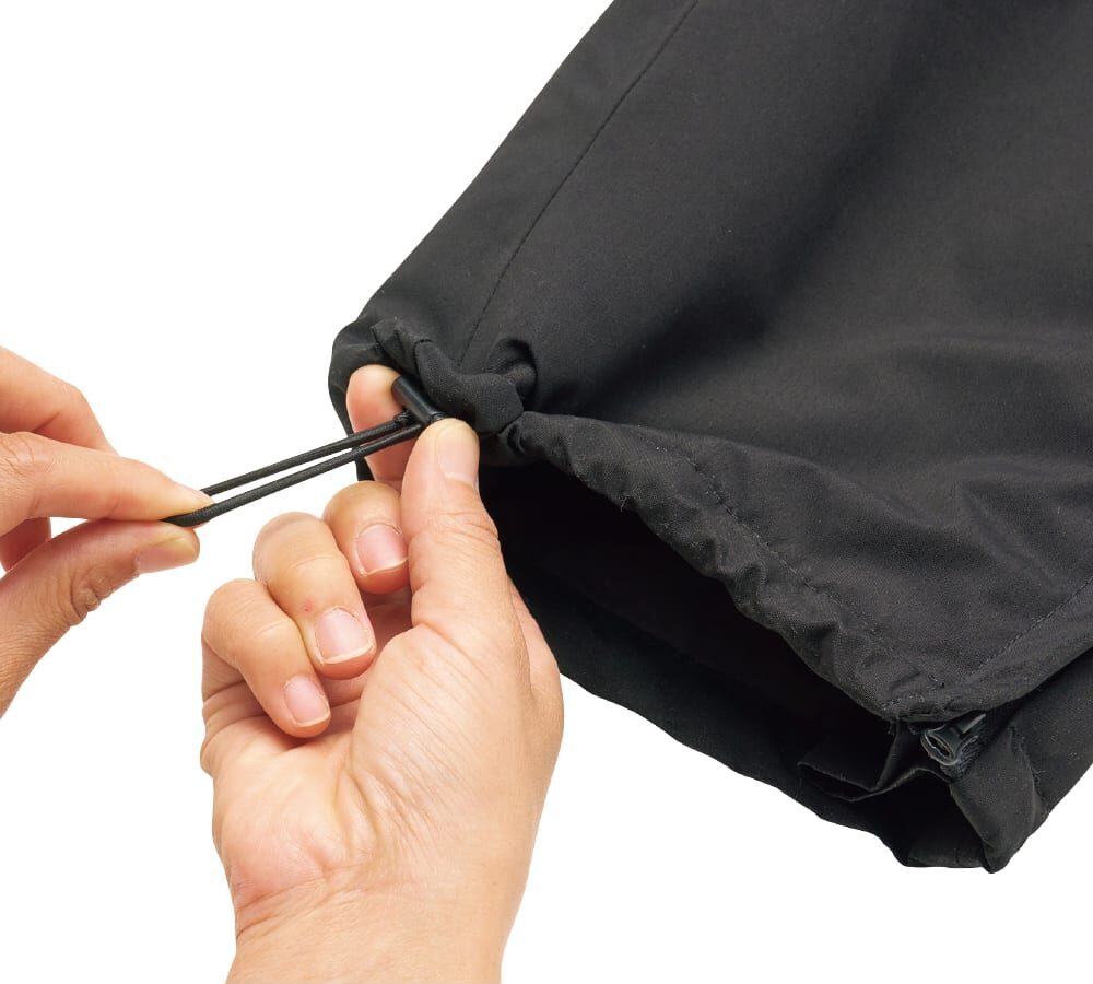 裾のドローコードを絞ることで、冷たい雨、雪、風などが入りにくくより暖かくなります。