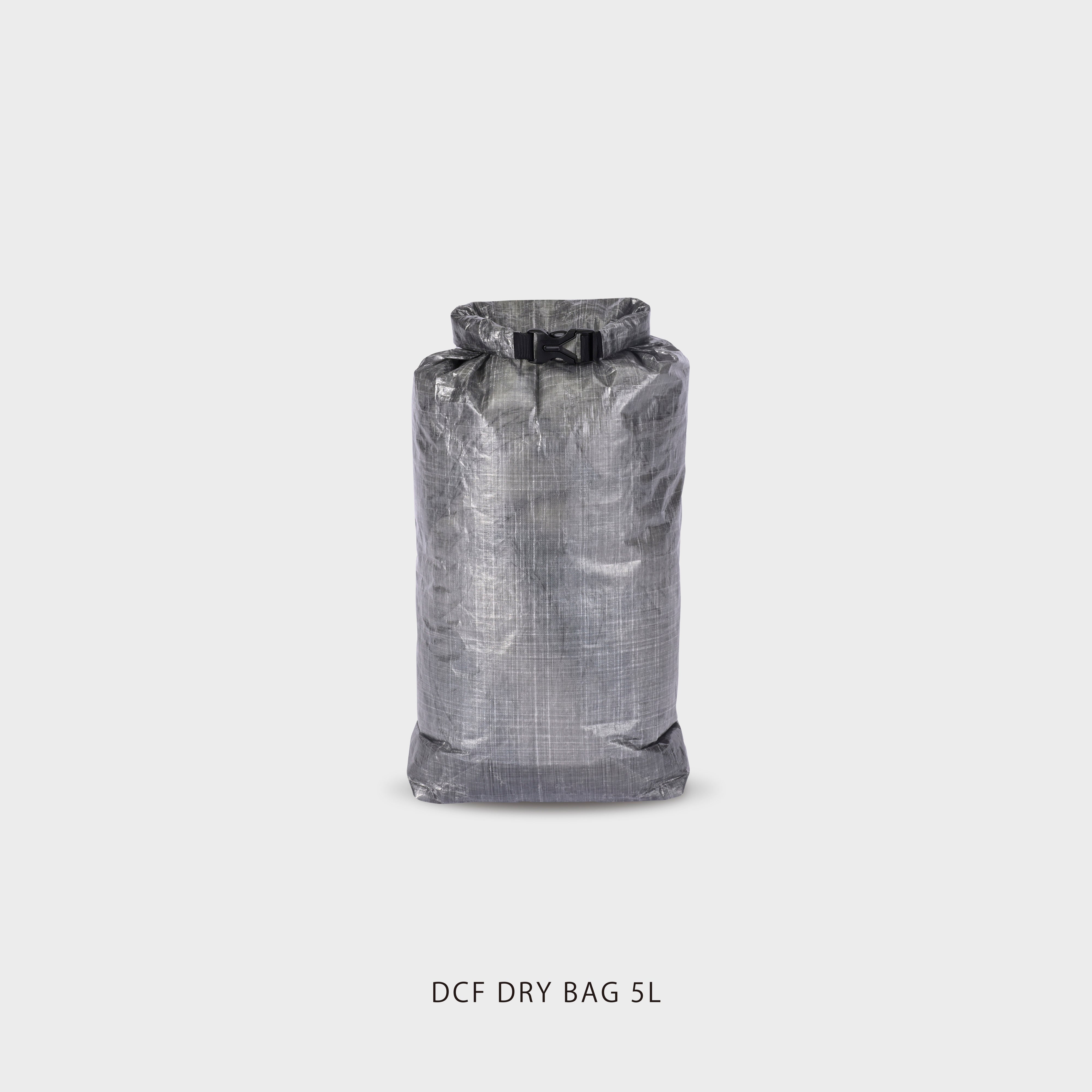 DCFドライバッグは、同重量の鋼鉄の約15倍強く、比重は1.0未満という軽さを持つダイニーマ®︎繊維を、両面樹脂でコーティングをした素材であるDCF素材製のドライバッグです。5L、10L、15Lの3サイズが提供されます。